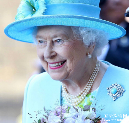 比如这枚伊丽莎白女王戴的绿松石胸针就是来自玛丽王后,如图,这枚胸针的造型偏向古典大气的款式,一圈大小钻石围绕着一颗圆形绿松石,颇有众星拱月的味道。跟伊丽莎白这一身衣服搭配起来不论是整体色调,还是线条映衬都非常的简洁舒服,让伊丽莎白看上去很精神优雅。
