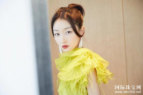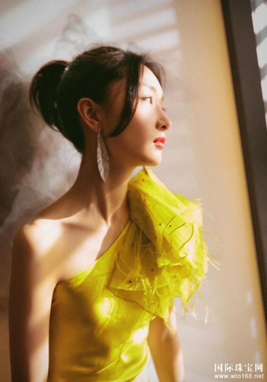 宝诗龙高级珠宝*代言人@周冬雨 佩戴**Contemplation高级珠宝系列珍珠母贝镶钻羽毛造型耳环出席丝绸之路电影节。