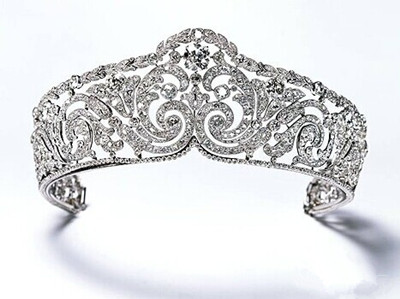 这顶冠冕同样来自于卡地亚,为当时比利时伊丽莎白王后所有拥有。该顶冠冕选择卷叶和象征着皇权的月桂叶作为设计灵感,林青霞的冠冕造型与之有异曲同工之妙。