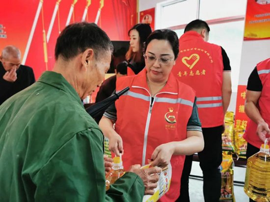 中金珠宝、芙蓉珠宝向13名当地贫困户捐赠了米、面、油等爱心物资。