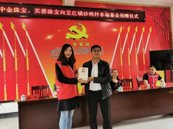 芷江县政协副主席、工商联主席杨柳春,中金珠宝党委委员、副总经理李晓东,芙蓉珠宝总经理何利斌出席捐赠仪式并致辞。沙湾村**书记梁春、书记李盛文、幸福基金理事长龙成桥,中国黄金芷江县加盟商负责人杨仕玉,中金珠宝党群与*推广部党支部、加盟管理党支部相关负责人及沙湾村村民代表、工作人员等五十余人参加了捐赠仪式。