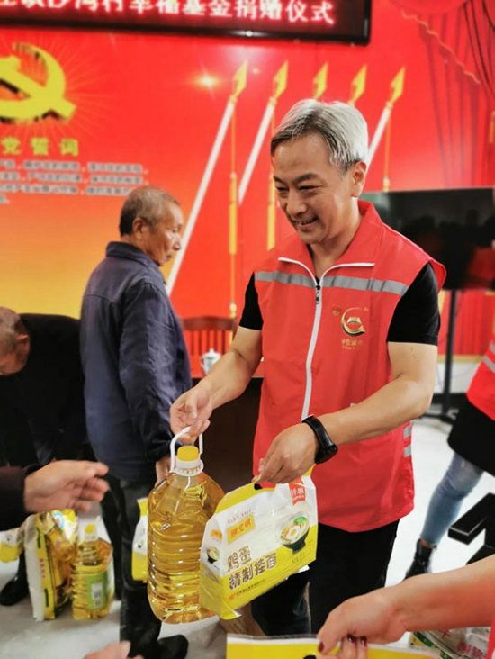 何利斌将捐赠物资送到贫困户手中