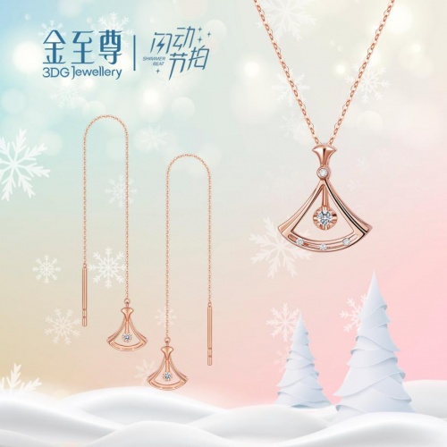 金**珠宝「闪动·节拍 Shimmer Beat」钻饰系列以舞动为设计灵感,采用专利高频灵动镶口工艺,令钻石视觉火彩加倍耀眼;同时通过精密杠杆定位原理,使钻石左右高频摆动,双层立体结构令钻饰整体空间感十足,18K玫瑰金与白金双色选择,任意风格随性搭配,高级质感时尚体现。