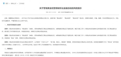 近期,随着黄金价格波动,一些不法分子和不良企业假借实物黄金交易之名,违规开展“黄金委托”“黄金租赁”“黄金投资”等业务,涉嫌非法集资、诈骗、赌博、非法经营等违法行为,扰乱经济金融秩序,严重危害社会公众财产安全。